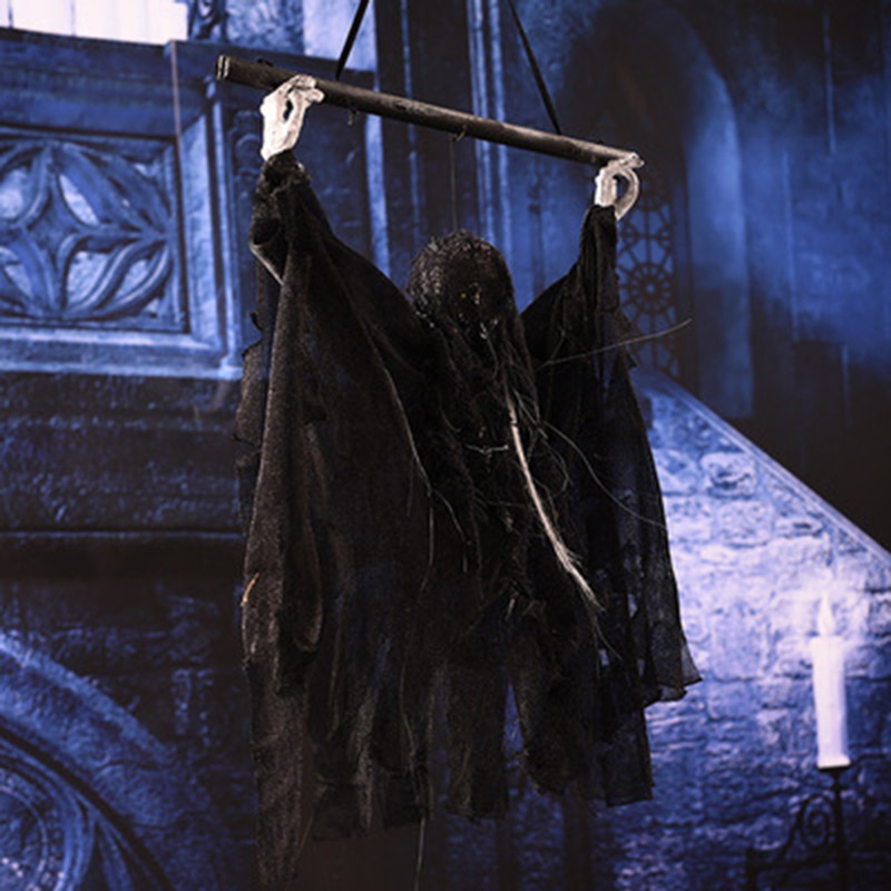 Halloween Props Party Voice Activated Hanging Skull Skeleton Haunted House Decor